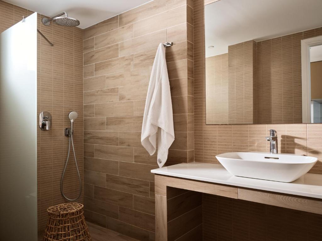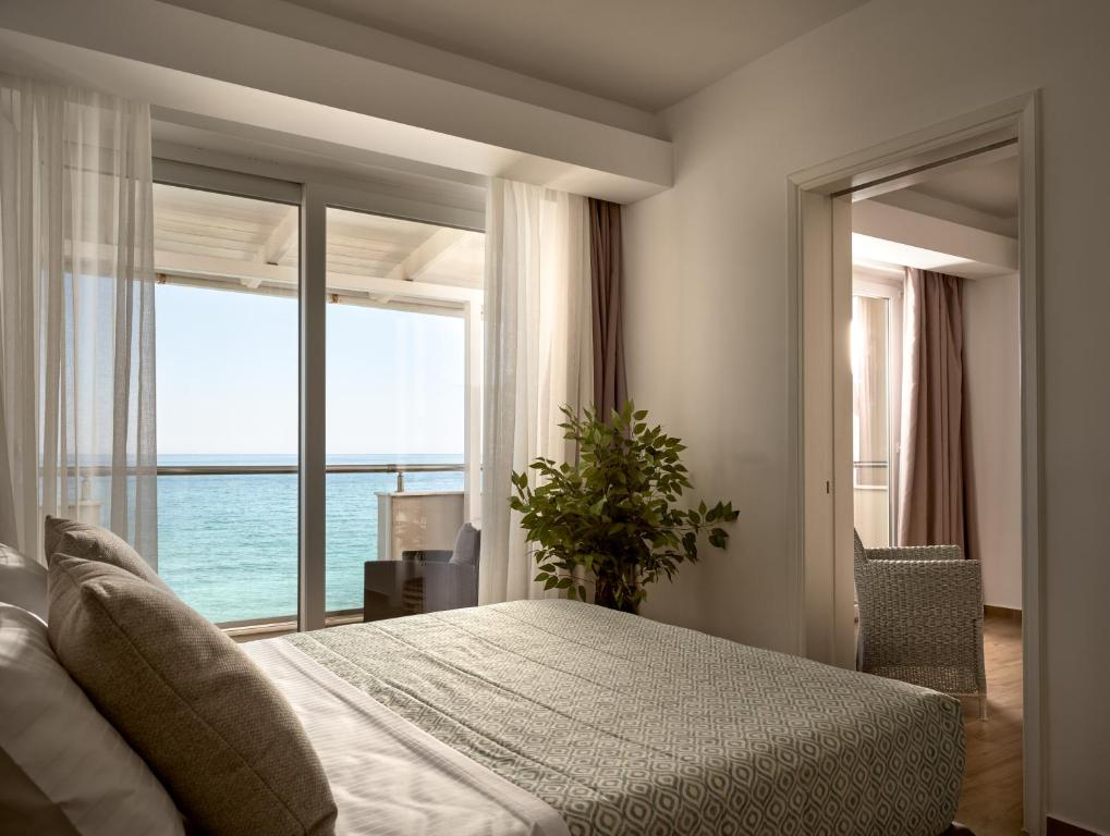 The spacious 35 m² family room is a fully independent apartment with a private kitchenette, ideal for comfortable family holidays. It features a separate bedroom with a large double bed, a living area with sofa beds, a balcony with beautiful views, and modern amenities such as air conditioning and soundproofing. The private bathroom includes complimentary toiletries, ensuring convenience and comfort for the whole family.